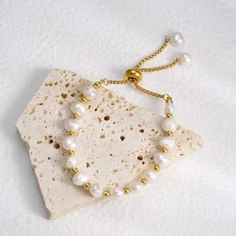Pulsera de acero inoxidable con perlas blancas de río dulce